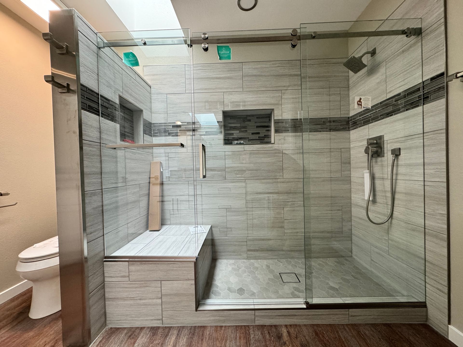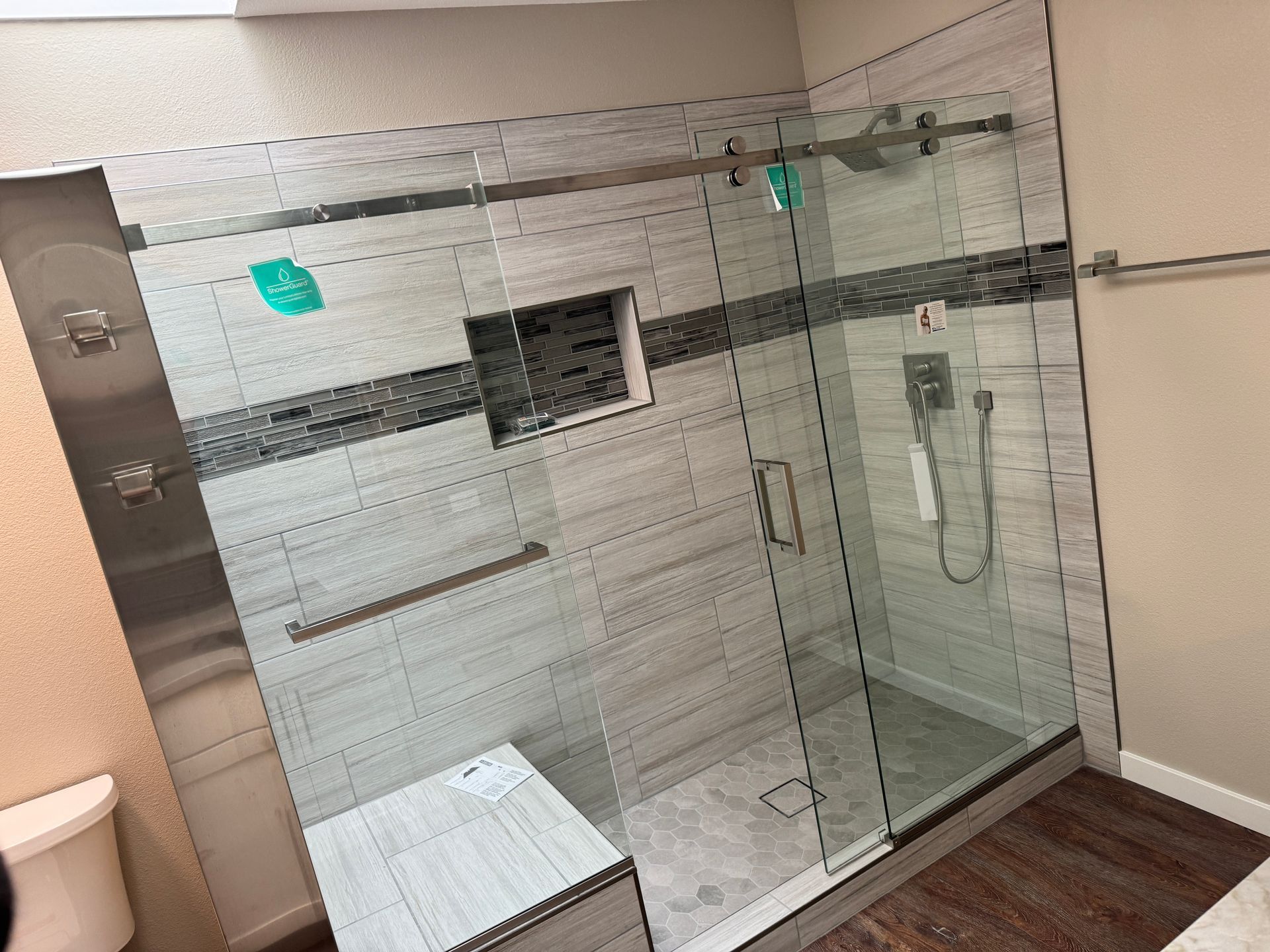 Alternatively, choose ShowerGuard glass from Guardian Glass, also backed by a lifetime warranty. ShowerGuard is baked into the glass and is a superior product that will add about 10-15% material cost to the glass only.