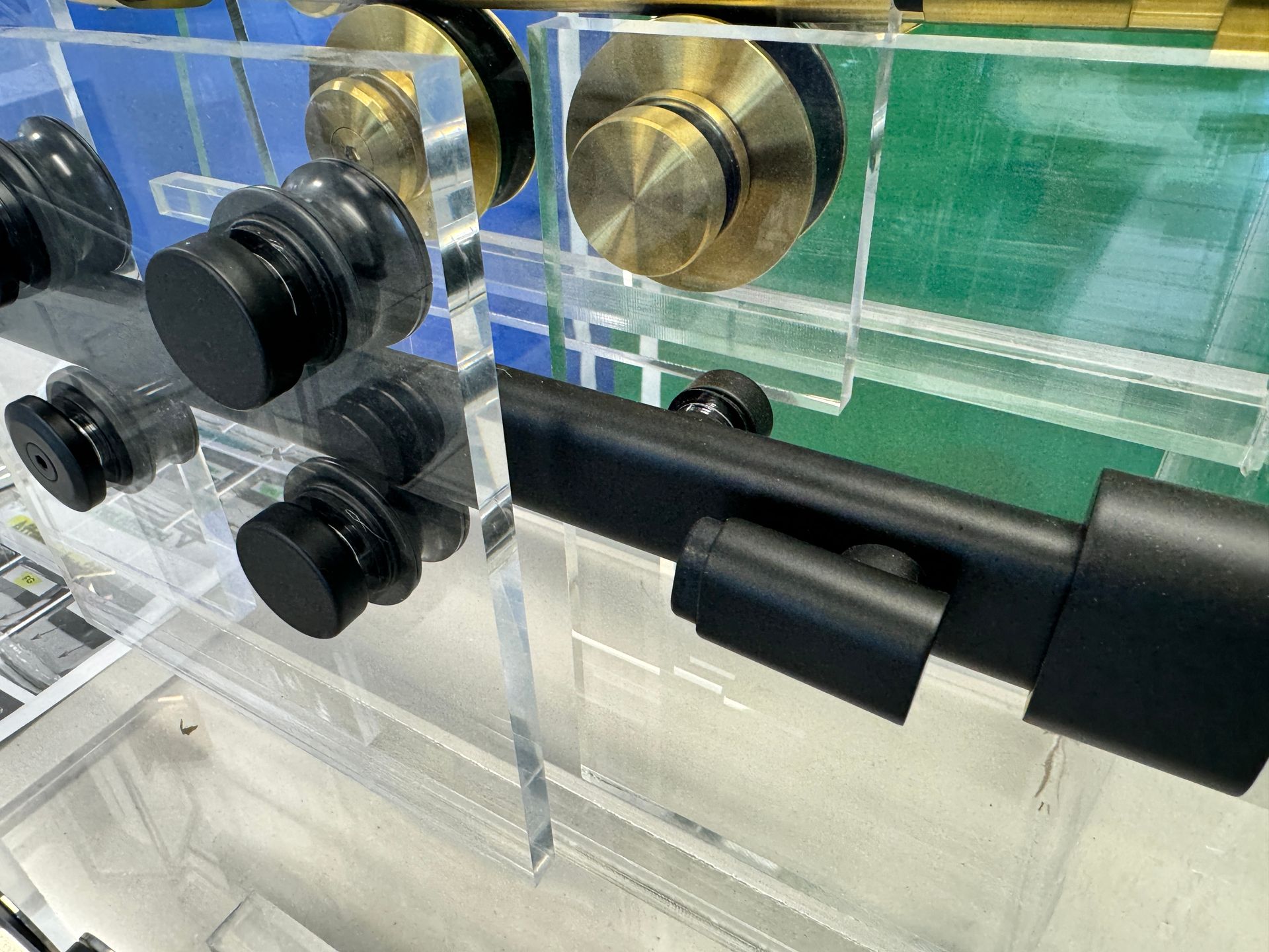 Cambridge's header features two standard rollers per door for smooth gliding and two anti-lift rollers per door for enhanced safety. Crafted from high-quality stainless steel, the system ensures both long-lasting durability and an elegant appearance. Cambridge is a CRL product and we believe it is the best product on the market. We are able to save the client money because of the skills. Only a highly skilled interior glazer can successfully make all the deductions to cut the header and find drill locations for fabrication of the system.